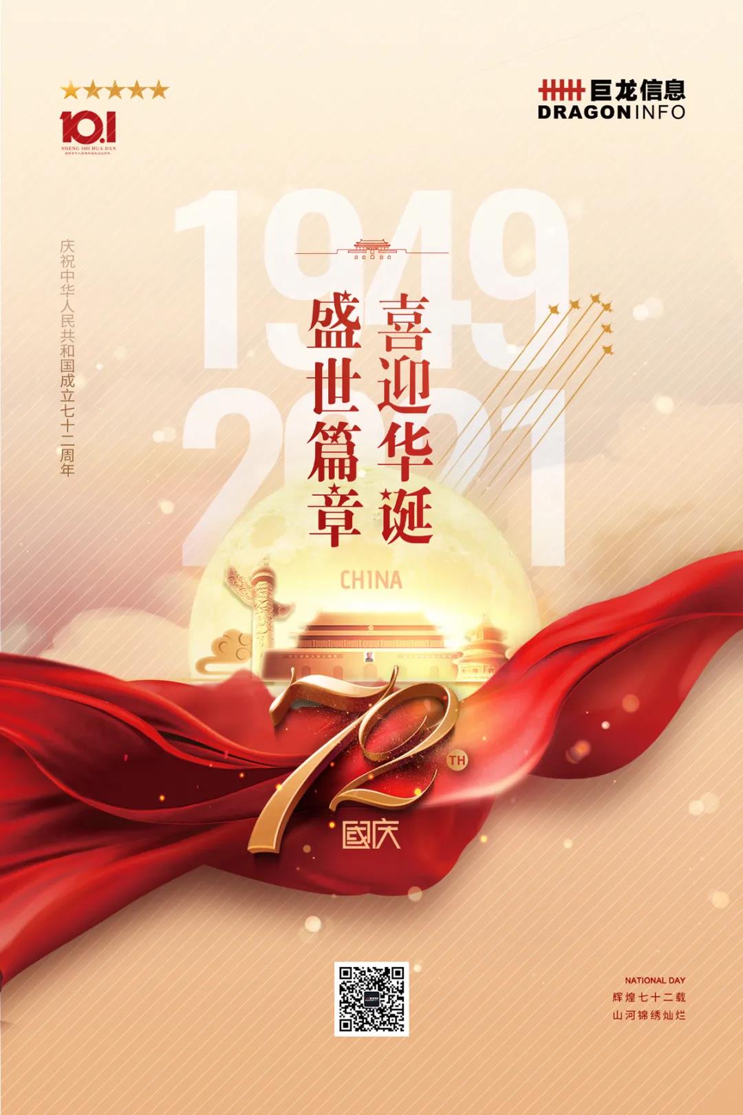 值此国庆佳节来临之际,巨龙信息全体员工向社会各界朋友及家人们致以诚挚的问候和美好的祝福!祝大家国庆节快乐,幸福安康!愿我们的祖国更加繁荣昌盛!...