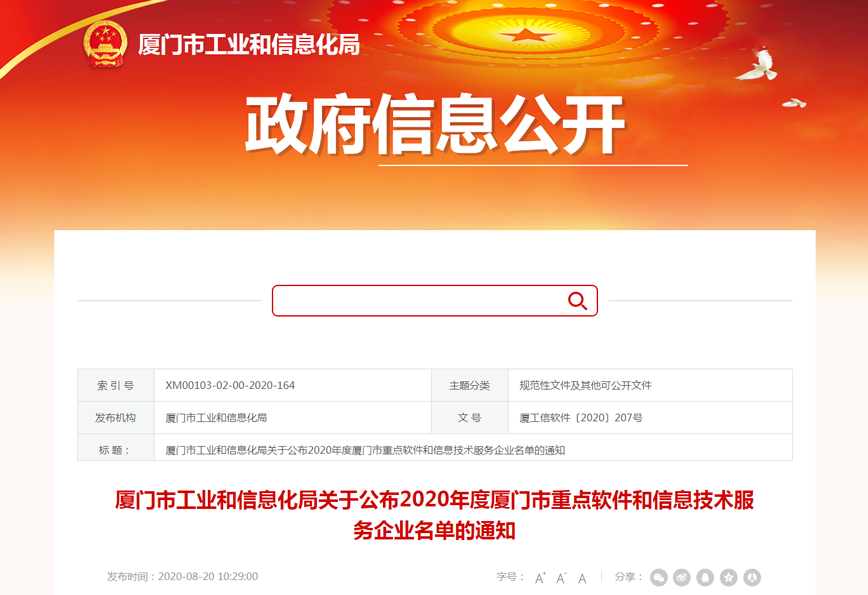 喜报|巨龙信息入选2020年度厦门市重点软件和信息技术服务企业