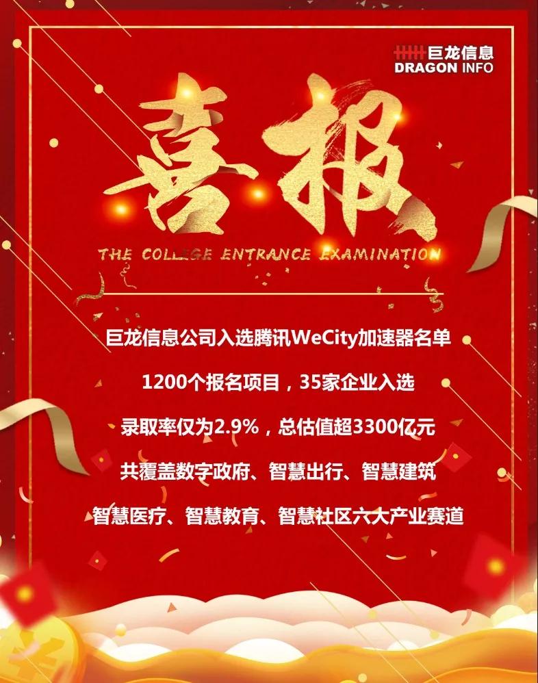 喜报丨巨龙信息成功入选腾讯WeCity加速器首期名单