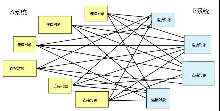 ■如果连接对象各自的连接方式有差异,如:对于程序的连接,如果沟通的语言、文字、格式、方法等有差异,则每一个连接方都要同时支持和维护多种连接方式。