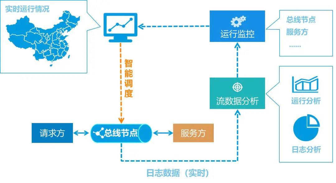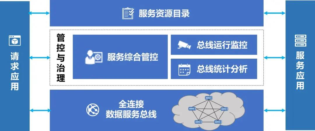 服务总线是云计算平台内平台服务层的核心支撑组件,承载着可提供的数据服务资源,并对服务提供者和使用者搭建一个可交互共享的服务中介平台,兼容适配异构多云,解决分布式数据访问和不同应用间访问调用的差异问题,将跨地域、跨层级、跨部门的应用系统及数据有机地联系与整合在一起,实现了全网分布式信息共享和资源综合利用。