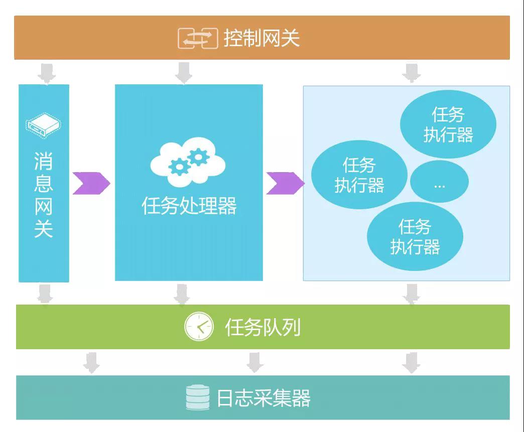 采用分布式监控技术,提供了数据收集、消息通道、实时计算、实时报警等功能,实现了服务及相关资源运行状况的实时监控。其架构设计如下图所示:
