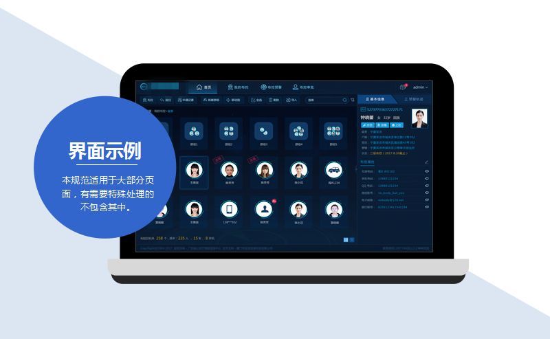 在2017年,UI部设计了上百个的项目,其中有警综业务、综合情报业务、安全业务、共享业务、法智执法业务、智能视频业务、智能坐席、智慧大屏等等。