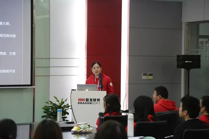 本次交流会由巨龙前台界面规范、17年设计成果展示、大屏管理系统、人工智能、框架3.0配置化系统五个方面的内容组成。分享会采用PPT演示形式,邀请巨龙信息UI设计部资深设计师为大家进行分享介绍,现场人气爆棚。