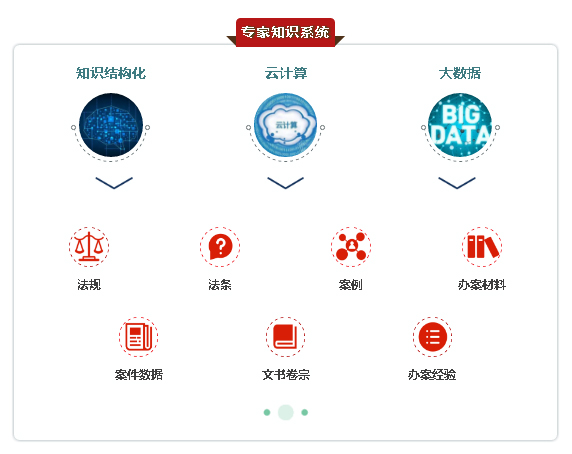 法度公司利用知识结构化、云计算、大数据技术将法规、法条、案例、办案材料、案件数据、文书卷宗、办案经验等资料结合专家模型,形成专家知识库,基于该知识库的支撑形成了“法度智能笔录系统”、“法度云智办案通”等执法办案智能辅助产品。