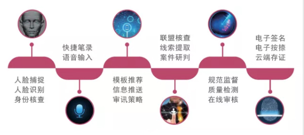 法度智能笔录系统集成了人像识别、语音识别、自然语言分析等前沿技术,实现了问话对象身份人像自动核查、问话内容语音识别输入、问话策略智能推送、笔录成果一键式校验、电子按捺和电子签名等功能。即为办案人员答复提高了笔录效率,又保障了执法过程规范性。此外,法度智能笔录系统对笔录数据挖掘,为侦查研判提供更多线索,助力案件侦查。