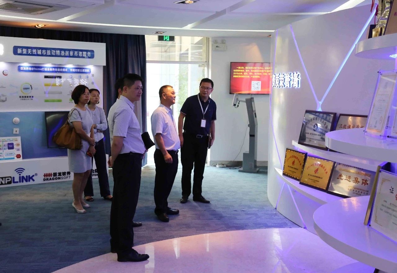 来访领导参观了公司展厅,公司董事长兼总经理刘晹向各位领导汇报了厦门巨龙信息的基本概况,从公司的发展历程、战略定位、商业模式、主营业务、项目开展情况、企业文化、团队建设规划几方面做了介绍。