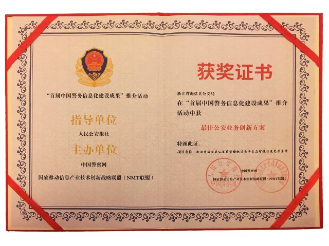 2018年智捷执法云平台及智捷法度笔录系统在人民公安报和中国警察网联合举办“首届中国警务信息化建设成果”推荐活动中获“最佳公安业务创新方案奖”。