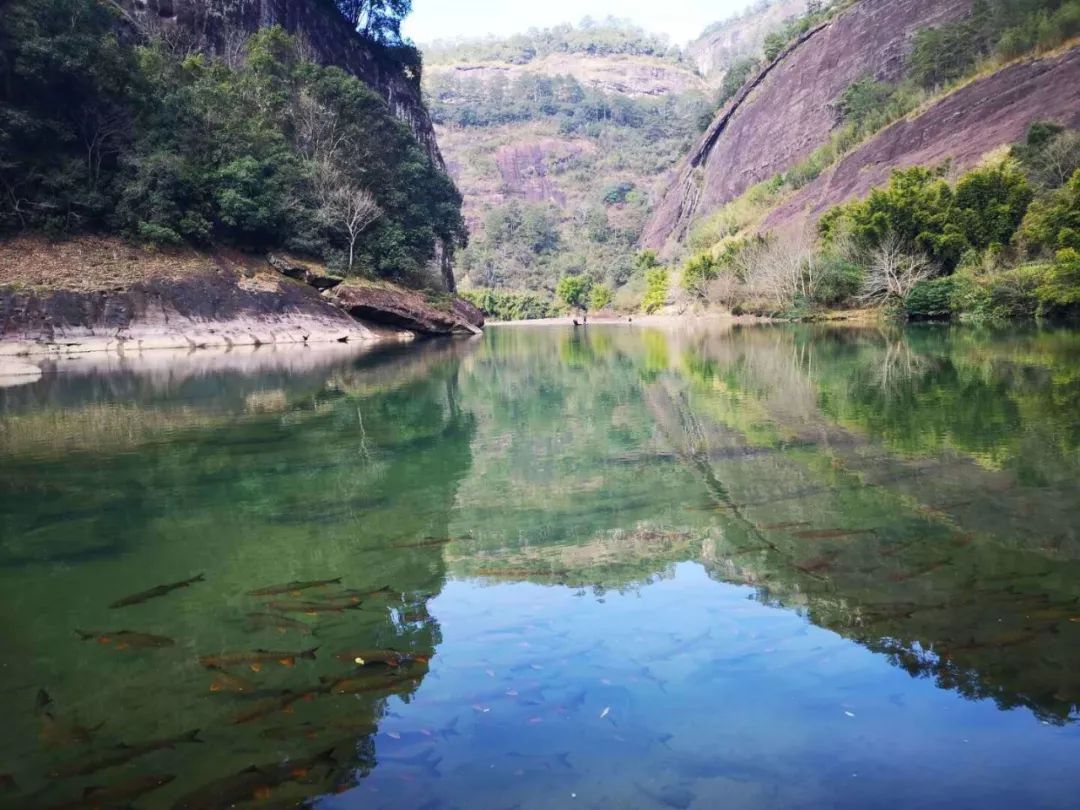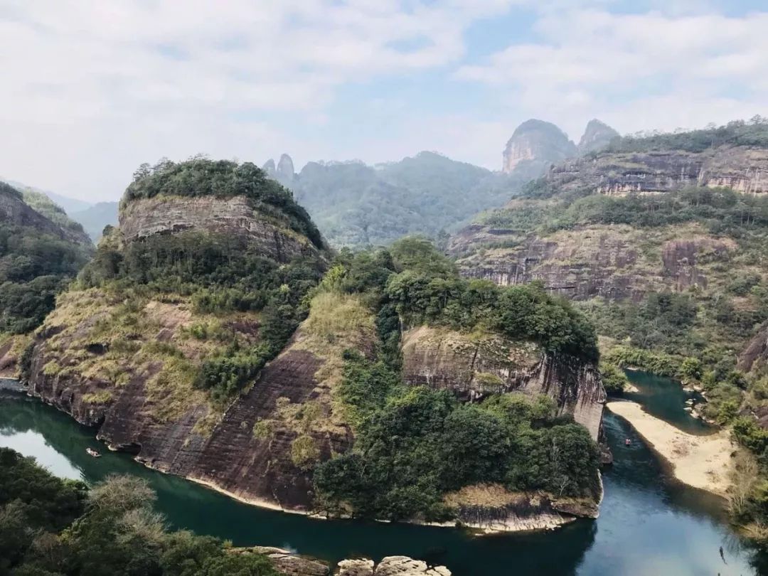 武夷山风景名胜区面积约70平方公里,属典型的丹霞地貌,发育典型的丹霞单面山、块状山,柱状山临水而立,千姿百态。“三三秀水清如玉,六六奇峰翠插天”,构成了奇幻百出的武夷山水之胜。