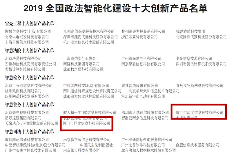 在本次创新案例征集活动中,巨龙信息参选的情指一体化实战平台、子公司法度信息参选的智能执法笔录系列产品,双双入选智慧警务十大创新产品名单。