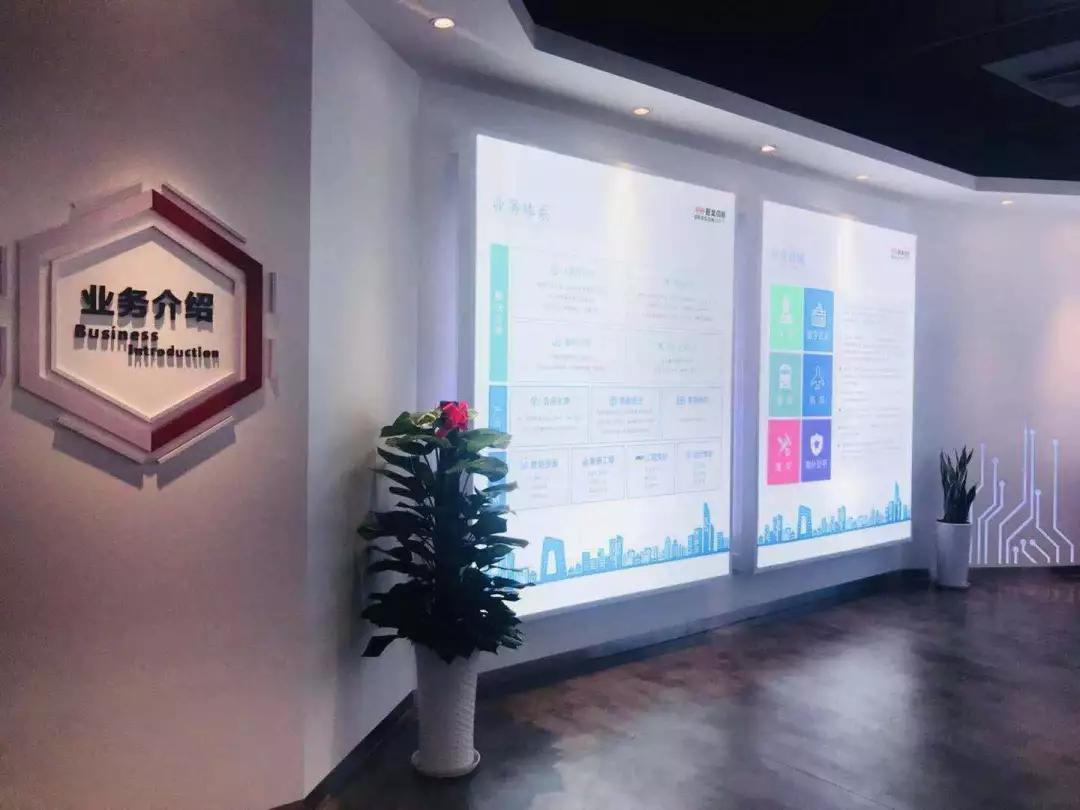 公司介绍区域主要采用了灯箱展墙,整体设计简洁通透,内容上包括“企业简介”、“领导关怀”、“企业文化”、“分支机构”、“控股公司”、“发展历程”、“核心能力”、“行业领域”、“业务体系”等多个部分,这里也将帮助客户与合作伙伴用最快速直观的了解公司。