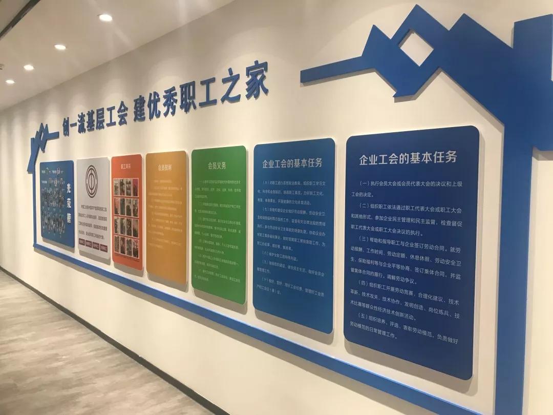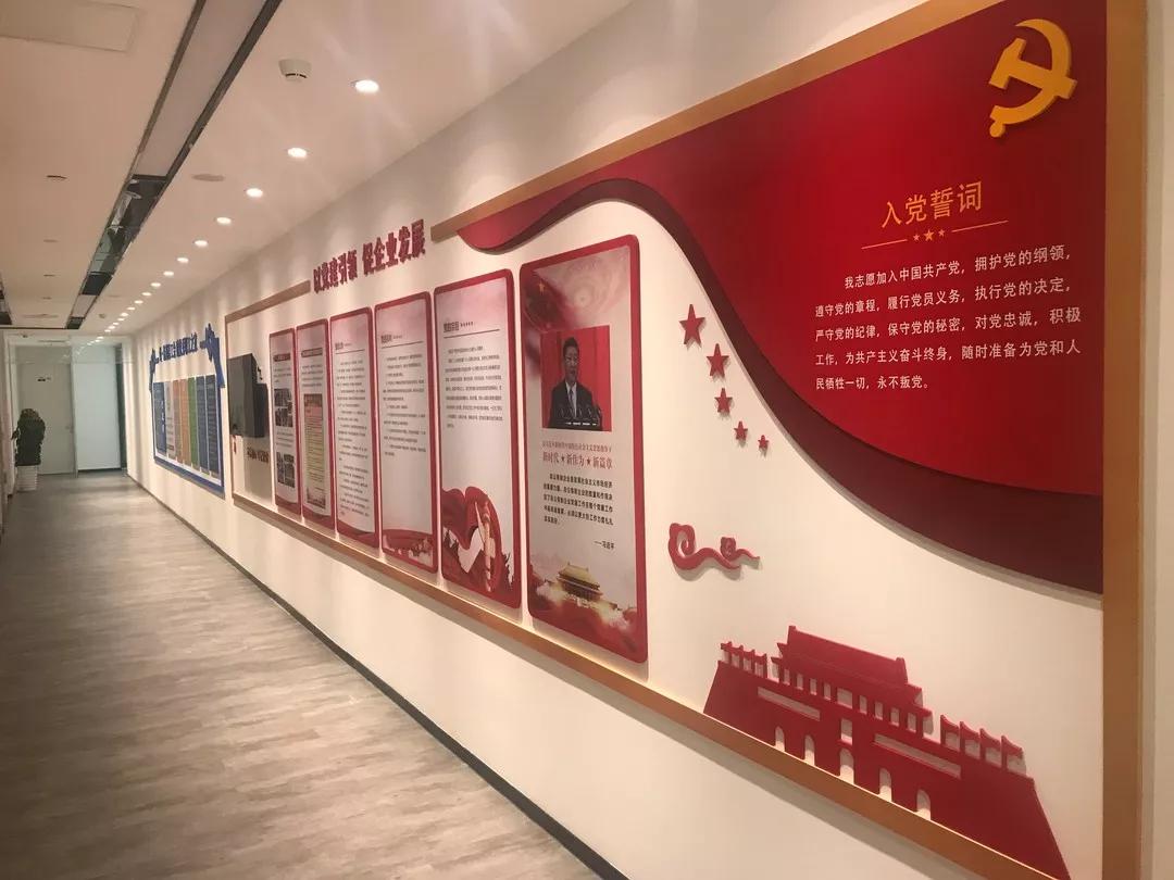 党建与工会墙彰显了巨龙信息党支部和工会的建设文化与成效,还专门设有一个多媒体屏幕,用于展示“长江支队精神”。