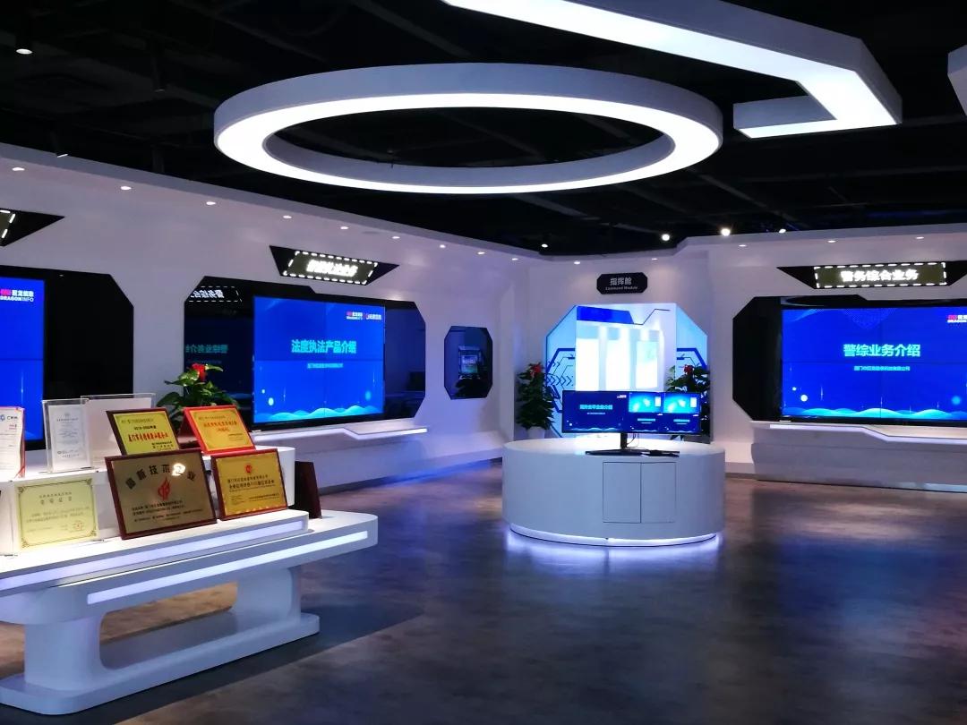 指挥舱是本次展厅新设立的一个产品体验区,它与展厅相连接,入口为方形拱门,配以双向电动人脸识别拱门,科技而神秘,它将带您进入一个跨时代感的现代化产品体验区。指挥舱将主要展示在不同公安业务的场景情况下,公安业务将如何展开。