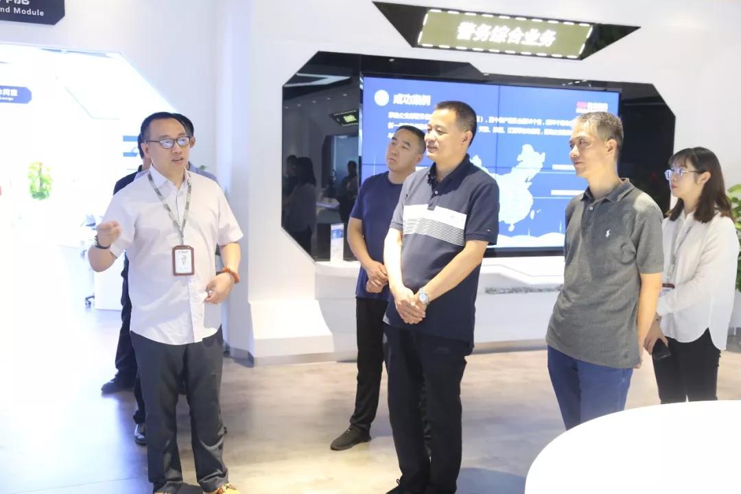 韩局长等领导在刘总的陪同下参观了巨龙信息展厅。参观期间,刘总与任总为韩局长等人介绍了企业的发展历程与业务体系,重点介绍了巨龙信息在公安、机场、海关、铁路等行业领域的优秀实践成果,并对巨龙业务体系做了详细介绍。