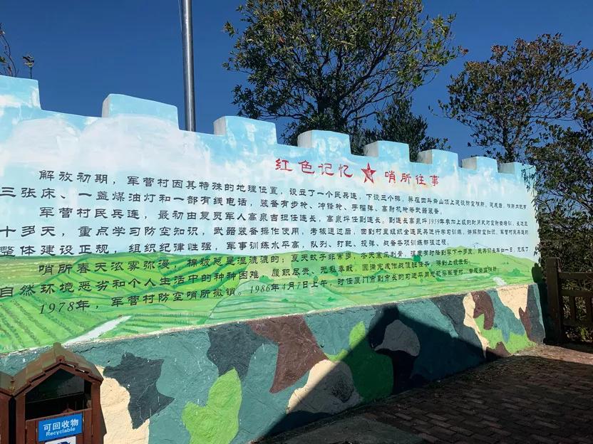 随后,党员们沿着河水清澈见底的军营村九龙溪走向“防空哨所”。高山防空哨所海拔千米,位于军营村四斗崙山顶上。据当地负责人的介绍,军营村位于同安区莲花镇西北部,与漳州长泰、安溪大坪成掎角之势,紧邻南安市,地理战略位置十分突出,适宜驻扎军队,是东南沿海地区防御的军事基地。这座有着半个多世纪历史的哨所,曾为保卫国家做出了巨大贡献,曾多次对低空来犯的敌机进行射击,数次被福州军区、厦门军区评为优秀哨所,如今已成为国防教育基地。