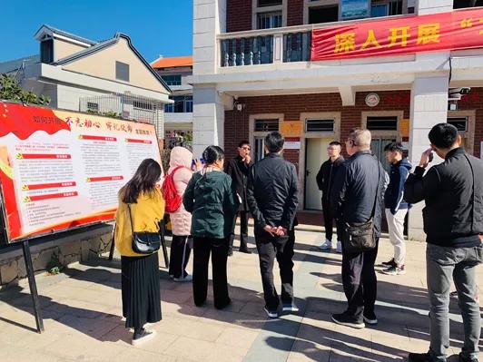 下午,党员们来到白交祠现场教学点听讲解,参观习近平总书记驻村指导脱贫的旧址、上山参观茶园种植等扶贫产业。曾经的白交祠村是厦门出了名的贫困村,如今已成为厦门市民旅游观光、休闲度假的热门去处。时任厦门市副市长和福建省委副书记的习近平曾两次深入到白交祠村考察调研,访贫问苦,并提出“山上戴帽,山下开发”的脱贫致富路线。