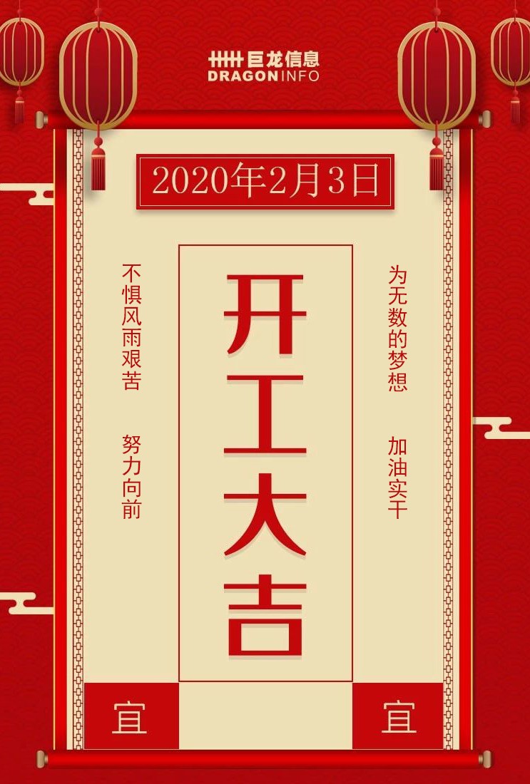 为了更好为客户服务,巨龙信息从 2 月 3 日(初十)正式开工啦!这是一个继续前进的号角,我们已重新回到自己奋斗的土地,让我们一起撸起袖子加油干。