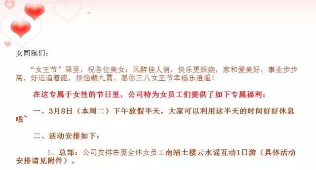 所有女性职工放假半天!神马!还有活动?!这可深深“刺痛”了身为男儿身的小编!不过这还没完呢。。