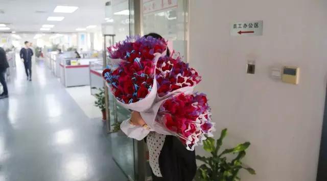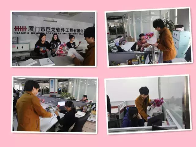 3月8日上午10点,派花大作战正式开始啦!此次女人节,由巨龙公司的帅哥们,为公司MM们送上这最美的节日祝福。