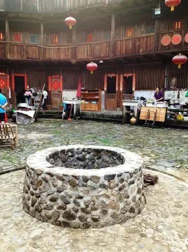 土楼内有水井,至可饮水又可防火。东西南北各有木制楼梯上去,每层楼道相通,楼道也全是木制结构,采光条件都很好。