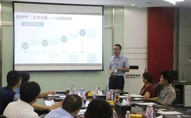 在座谈会上,副总经理任勇详细介绍了巨龙公司的发展战略、核心业务、公安市场等方面内容。双方就公安行业的市场状况进行了深入的交流和探讨,同时就双方的核心竞争优势交换了意见,共同展望了广阔的合作前景。