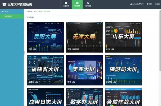 随着大数据时代的到来, 如何将数据进行可视化分析一直是当今研究的热门主题。今年UI部门已经开发过许多大屏化的项目,为了以后方便项目的管理和开发,UI投入进行了大屏实例化的巨龙大屏管理系统开发。通过大屏管理系统方便拖曳实现主题、项目、组件的复用,获得大家赞赏。