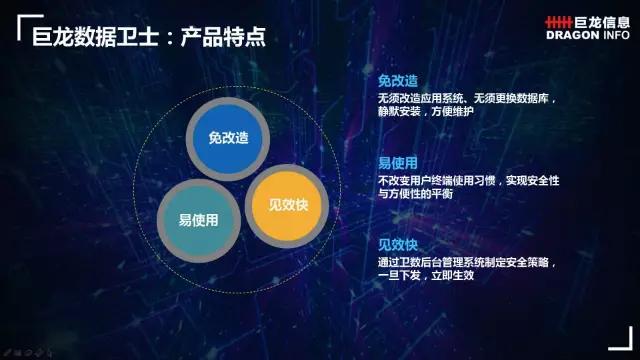 数据卫士是一款专门防止内部人员主动泄露敏感业务数据的安全产品,该产品构建一个可管控的安全数据访问环境。
