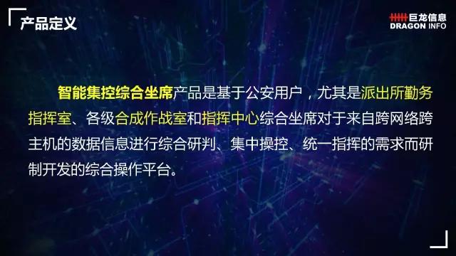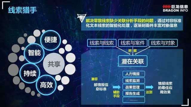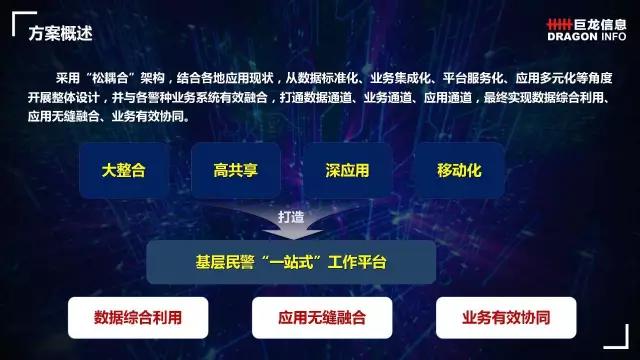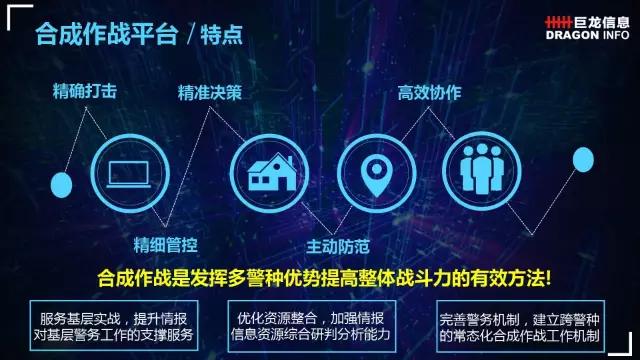 巨龙大情报系统以信息化应用为支撑,以情报和信息研判为主要内容,通过有效整合各类信息资源,实现情报的高度共享和深度应用,提升公安机关的战斗力。