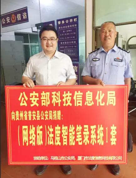 在参观走访结束后,公安部科技信息化局向贵州省普安县公安局捐赠了多套系统,帮助加速当地信息化建设。黄总代表公司参与了捐赠仪式并向普安县公安局捐赠了一套法度笔录软件。