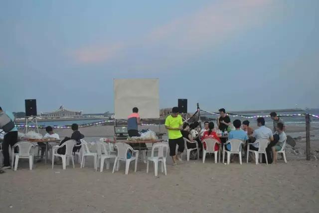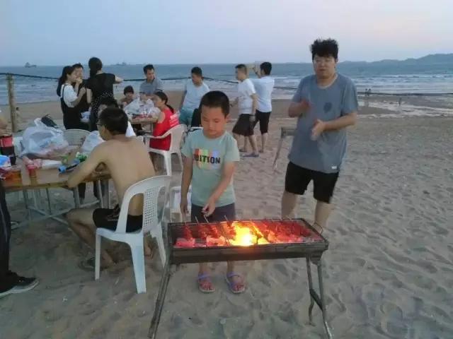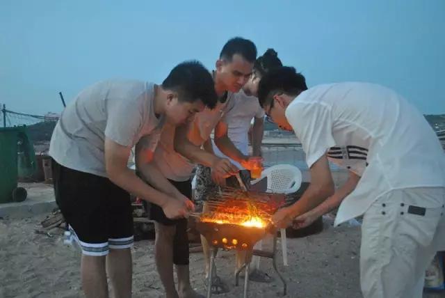经过精彩的角逐后已是傍晚,大伙们在海边搭起烤架一展‘烤’技。