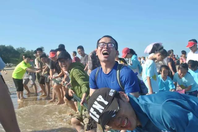跟着船长体验了渔村文化后,我们驱车前往最美的沙滩——坛南湾。 坛南湾的海水水质清澈透蓝,大家踏着海浪,看着阳光洒在海面上的光辉一时童心兴起,举办了一场别样的趣味比赛。