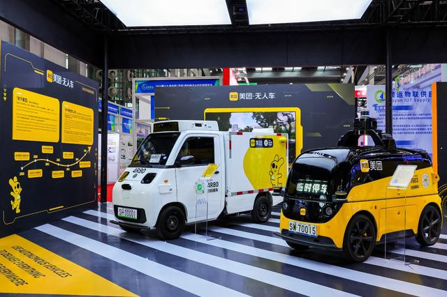 深圳物博会现场的美团无人车展位。